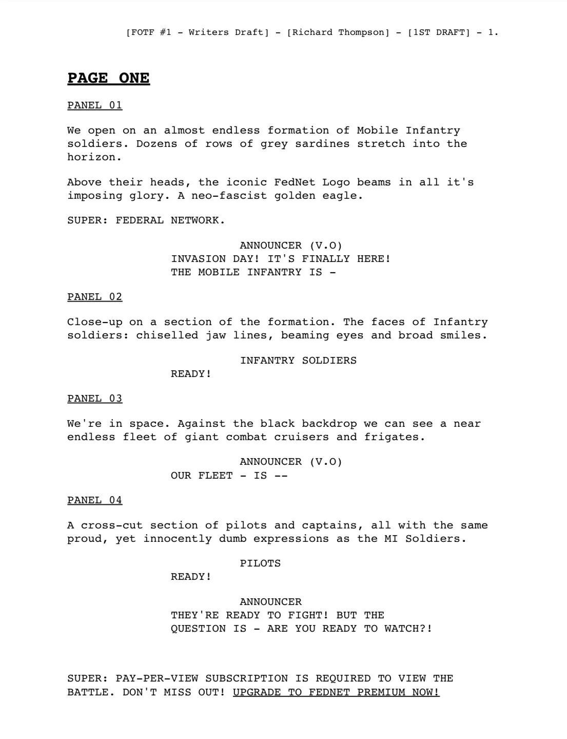 Starship Troopers Comic Pitch - Dark Horse / Markiosa Comics